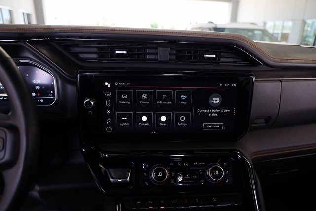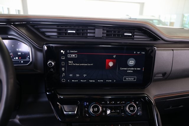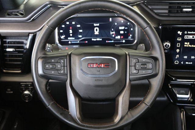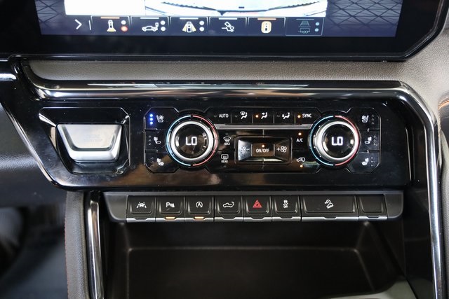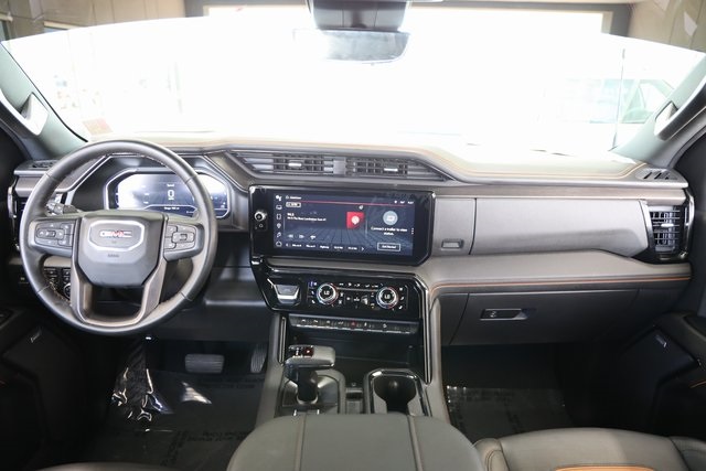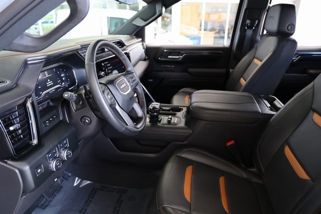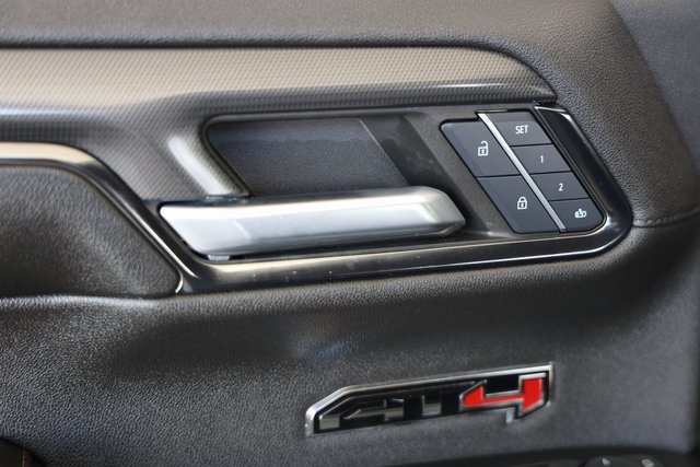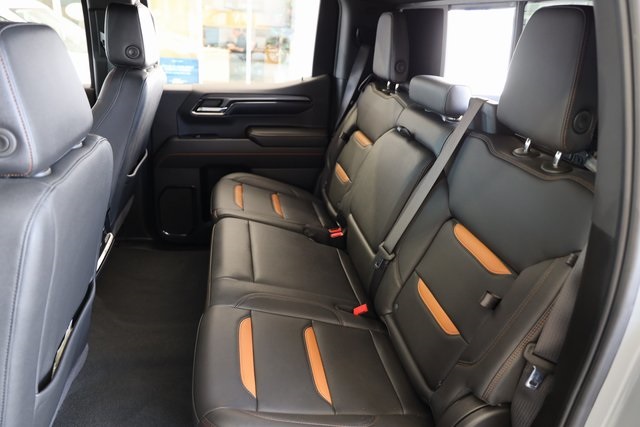Inside AT4, you will find an athletic, purposeful interior designed for your active lifestyle. It features unique darkened trim and decor, perforated front leather seating surfaces in Jet Black with Kalahari accents and smart storage compartments. Information includes an Off-Road Inclinometer that shows the fore-and-aft tilt, front tire angle and left-and-right tilt. And for the added views helpful in maneuvering through rough terrain, there are up to 15 available camera views including Surround, Front and Rear Views